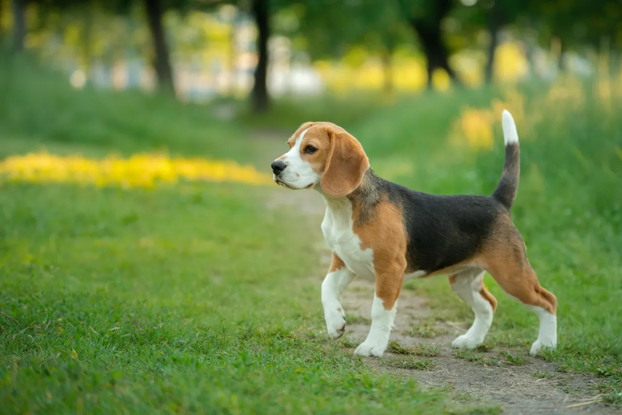 Beagles are energetic dogs that need at least an hour of exercise daily. They enjoy long walks, hikes, and games that engage their nose, like scent trails or hide-and-seek.