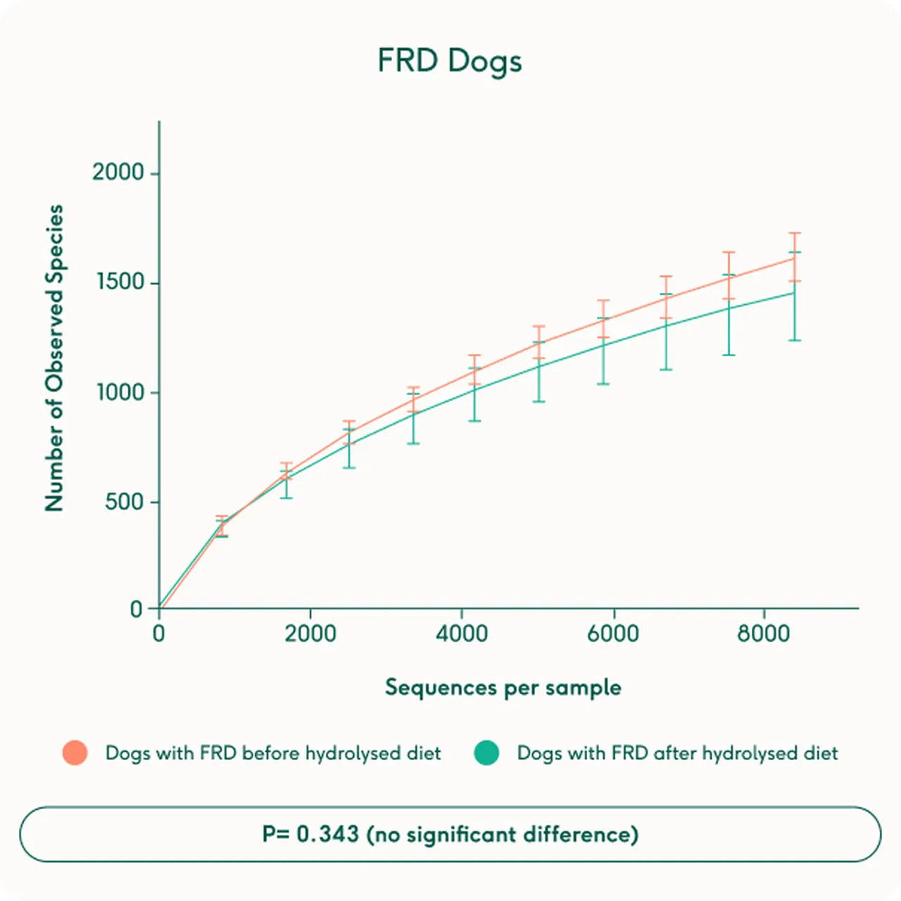 Emerging research confirms that this pattern is measurable. Dogs with chronic enteropathy and atopic dermatitis both show reduced microbial diversity – particularly a decline in Fusobacterium and Megamonas, genera associated with intestinal health1 – and altered short-chain fatty acid concentrations.2 Even in dogs fed hydrolysed diets, microbial richness remains static after weeks of feeding.3