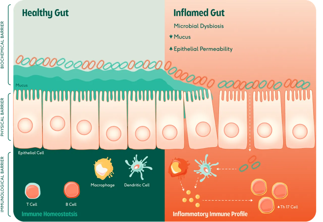 Roughly 70% of immune cells reside in the gastrointestinal tract. There, a complex interaction unfolds between microbes, enterocytes, and immune tissue – a balance that keeps the body from overreacting to harmless antigens.