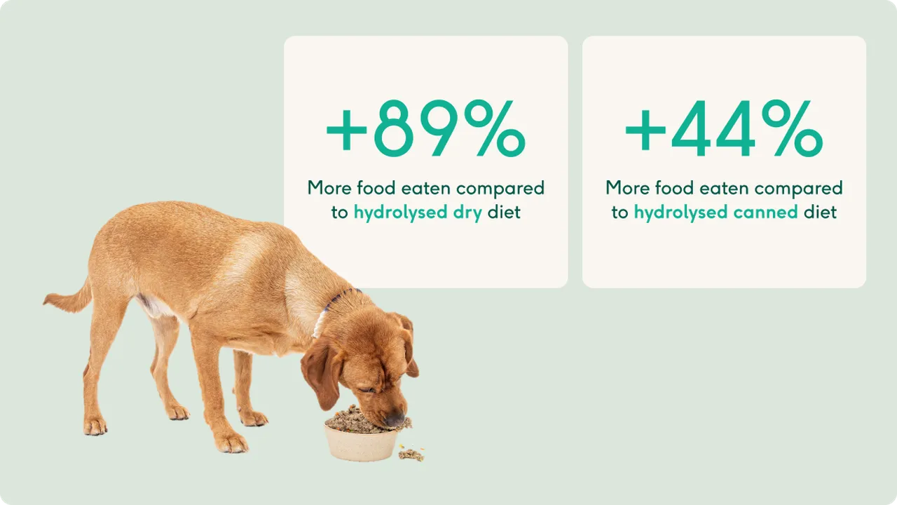 Gentle cooking maintains palatability compared to hydrolyzed diets, which is an often-overlooked factor in compliance. In an independent, third-party feeding trial, dogs preferred Hypoallergenic Pro 2:1 over a popular hydrolysed option, consuming 90% more food.
