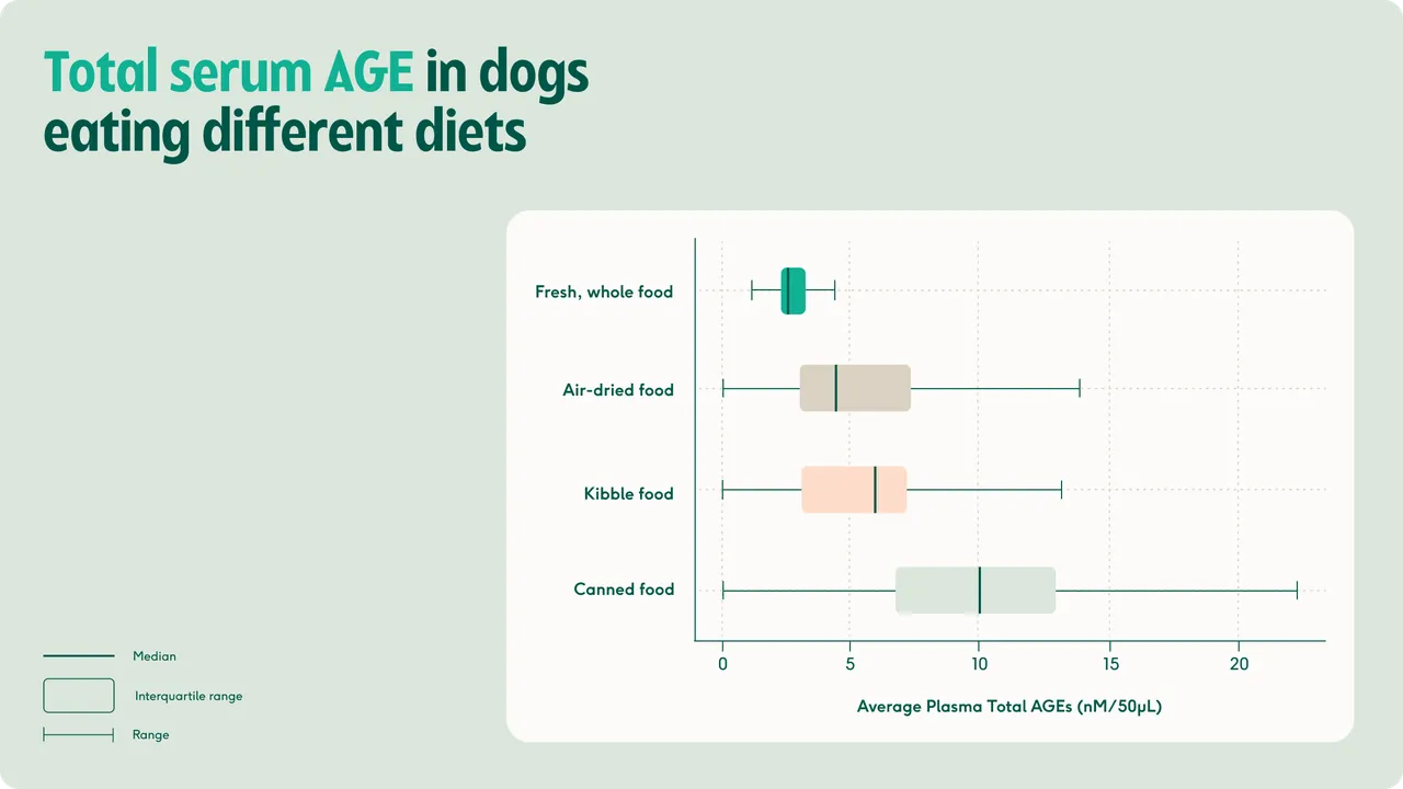 While processing is necessary to an extent to control pathogen risks, cooking at moderate temperatures (around 90°C) appears to preserve nutrient integrity and kill food-borne pathogens, while limiting AGE formation. In controlled cross-over studies, plasma AGE concentrations were significantly lower in dogs receiving gently-cooked food than those fed canned or extruded diets.2