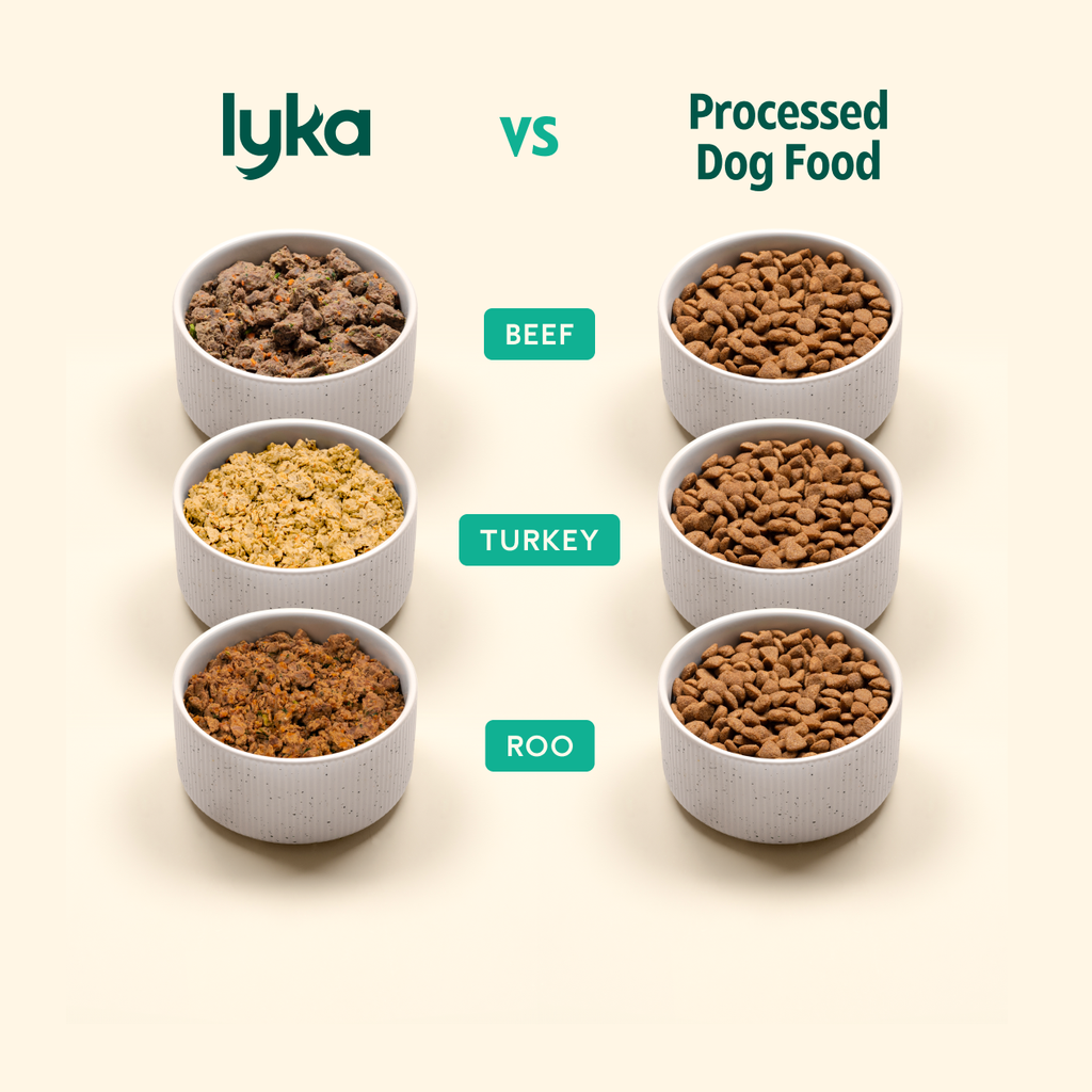 Say goodbye to feeding the same processed dog food each day and hello to Lyka. Our six real food meals are vet-formulated for shinier coats, better tummies and longer lives.